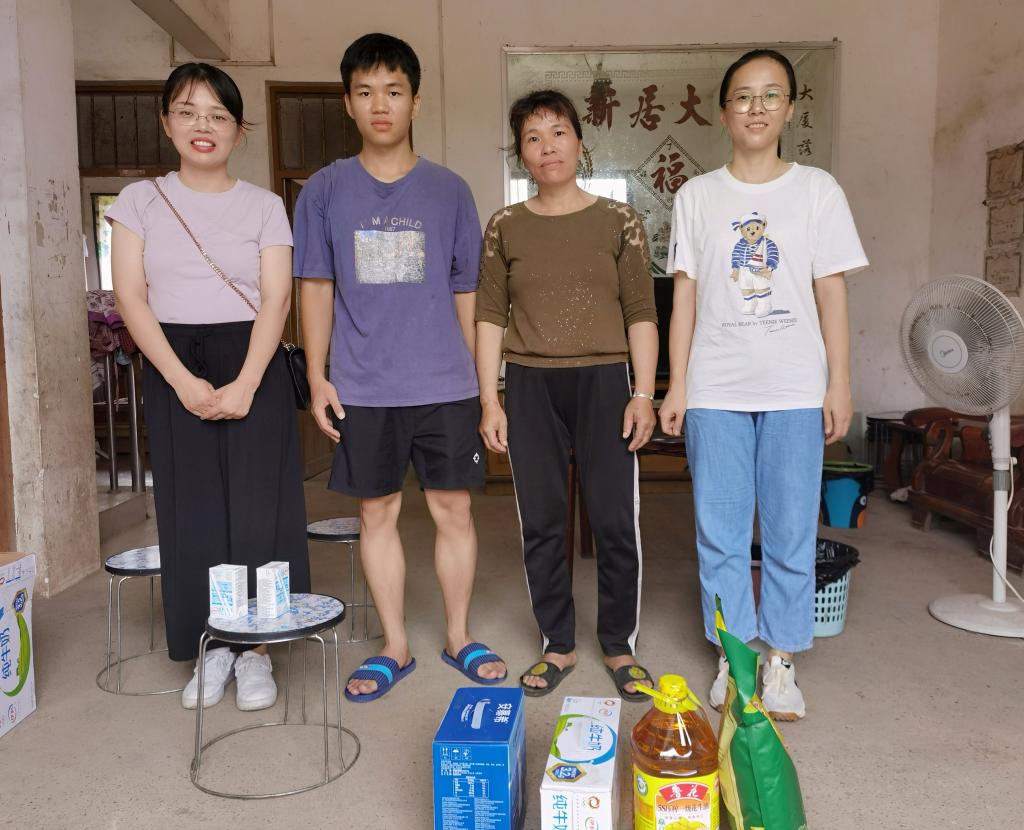 为扎实做好学生资助育人工作,增强家校联系,2023年7月28日,生化学院团委书记、2022级辅导员陆小菊,2021级辅导员俸瑞萍一行人到柳州市鱼峰区刘晓莉同学、来宾市凤凰镇岑塘村钟庆宝同学家中开展2023年暑假家访工作。