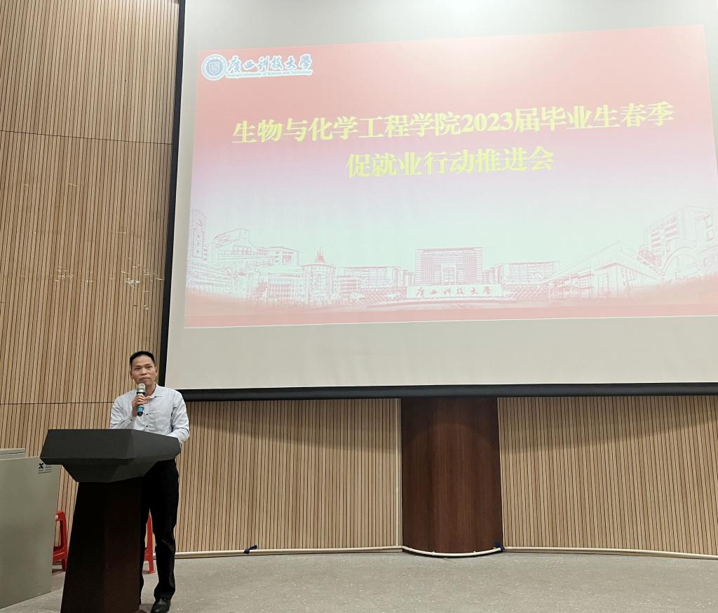 2月28日晚上,生化学院2023届毕业生春季促就业行动推进会在柳石校区第一报告厅举行。学院党委副书记、纪委书记钟兴,学院就业专干、毕业年级辅导员阳辰峰,2023届毕业生参加了此次大会。