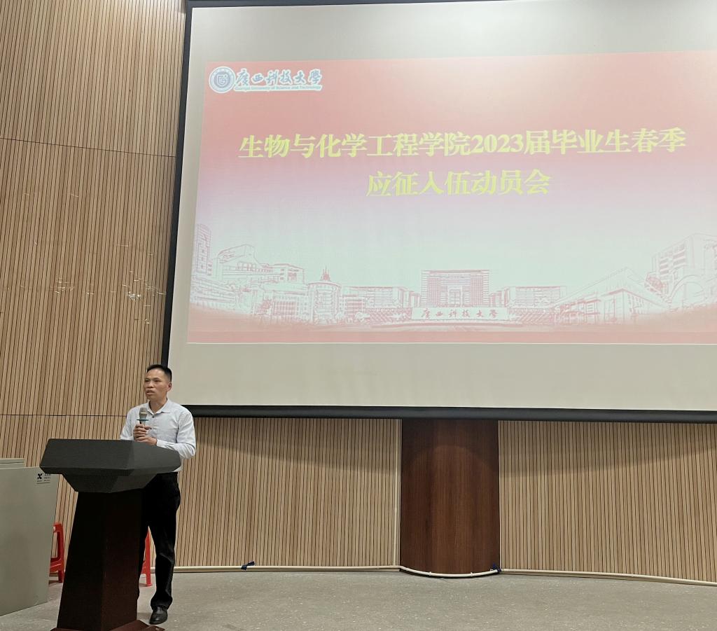 为落实征兵工作要求,做好征兵宣传动员,增强学院毕业生积极报名应征入伍的热情,2023年2月28日,生化学院在第一报告厅召开2023年春季征兵工作动员大会。会议由毕业年级辅导员、征兵工作负责老师阳辰峰主持,学院党委副书记、纪委书记钟兴,2023届在校应届毕业生参加会议。