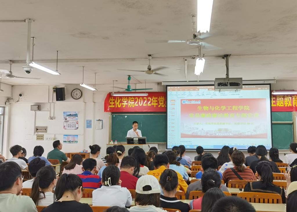 为进一步深化党员纪律作风建设,增强党员廉政廉洁教育,2022年6月14日下午,生化学院开展党员廉政廉洁教育专题党课。本次党课由学院党委副书记、纪委书记钟兴主讲,学院全体党员参加。