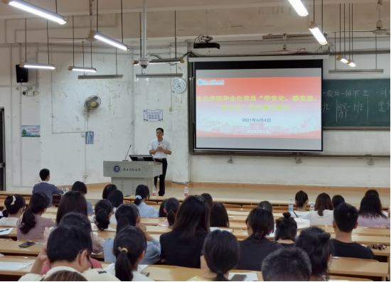 会上,钟兴老师结合《中国共产党廉洁自律准则》、《中国共产党纪律处分条例》和讲述廉洁故事,为毕业生党员讲授党风廉洁教育党课。