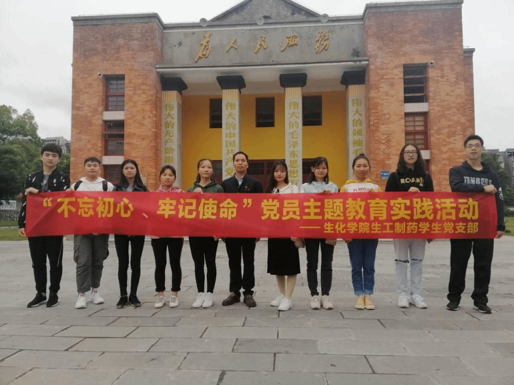 为学习贯彻习近平同志在庆祝中华人民共和国成立七十周年大会上重要讲话,2019年10月26日,生物与化学工程学院生工制药学生党支部于柳州军事博物馆举行了“不忘初心、牢记使命”党员主题教育实践活动,意在加强学生党员的国防教育和爱国主义精神。本次实践活动由支部书记钟兴老师带领生工制药学生党支部的两位正式党员和八位预备党员参加。