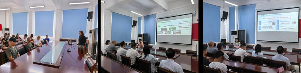 程缘(左)、陈通(中)、张佳艳(右)副教授对木薯产品开发、种植与加工过程的标准化技术等内容进行培训