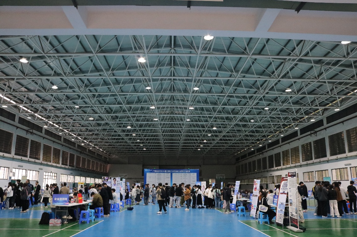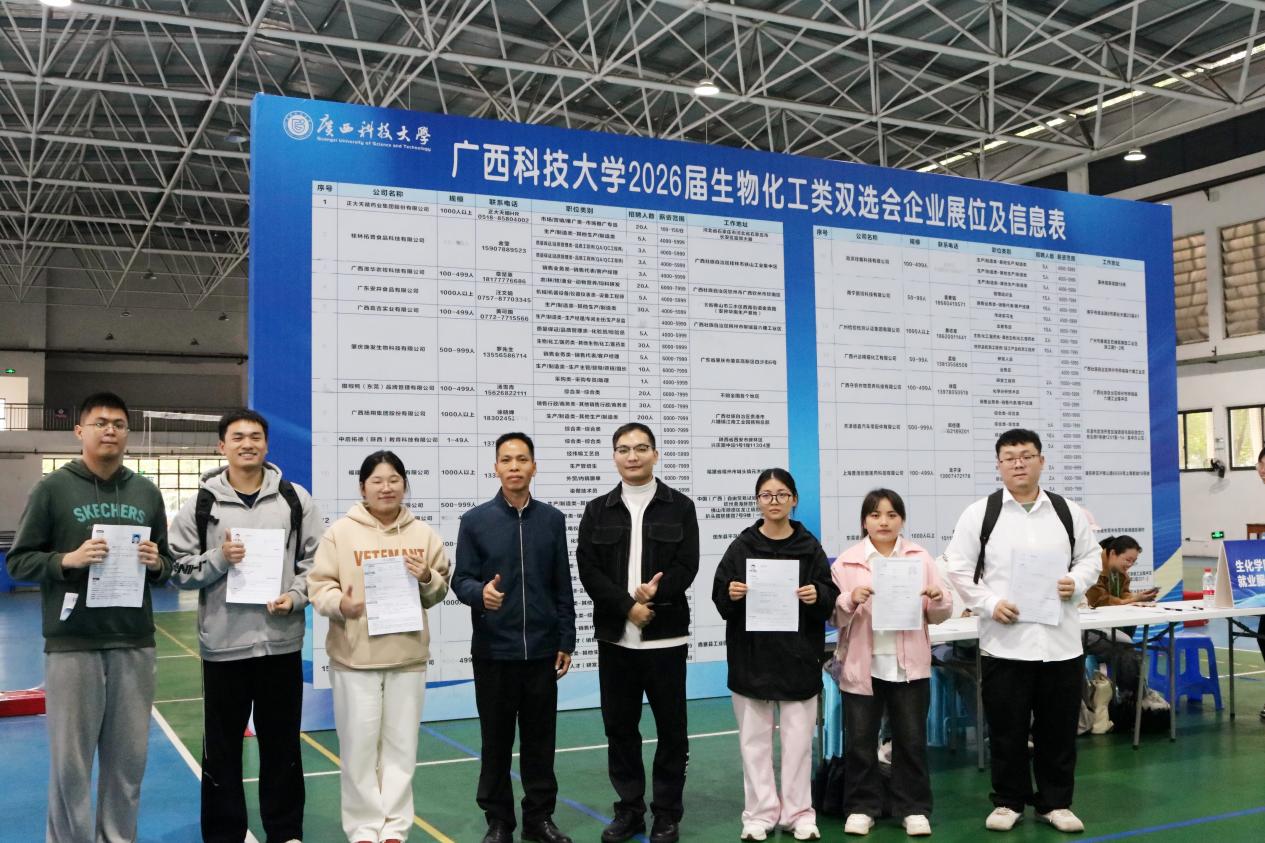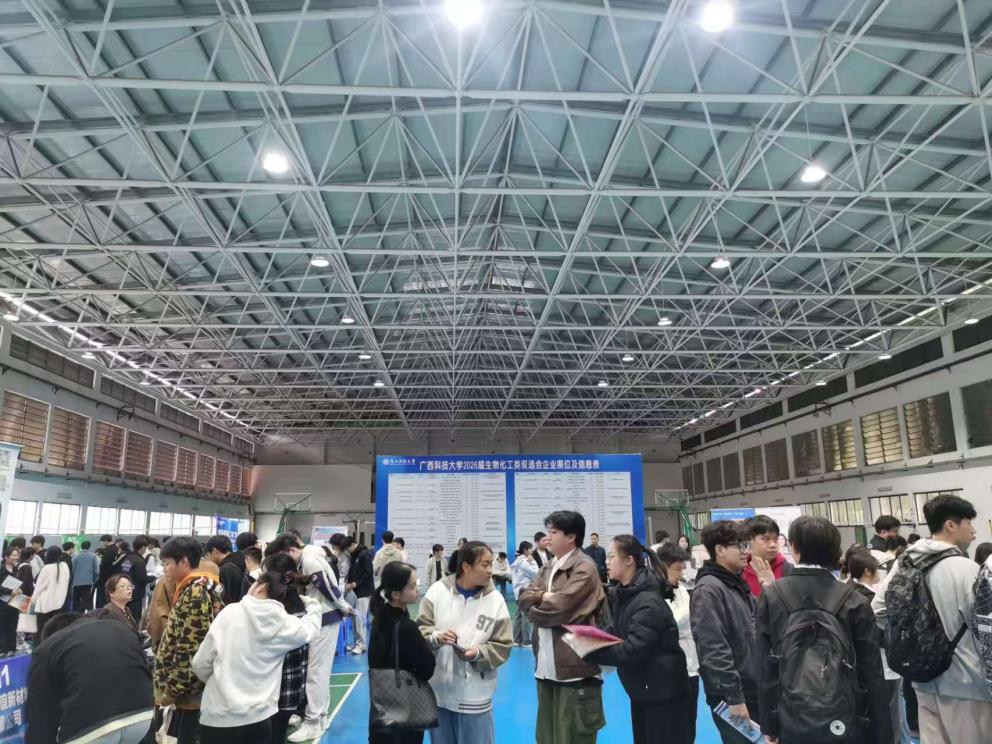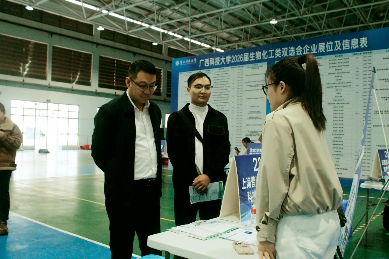 为促进2026届生物化工类毕业生高质量充分就业,深化校企协同育人机制,11月4日下午,由广西科技大学大学生就业指导中心主办、生物与化学工程学院承办的2026届生物化工类毕业生专场双选会在柳石校区体育馆顺利举行。生物与化学工程学院党委书记陈志波,党委副书记、院长文家燕,党委副书记、纪委书记钟兴,各系主任、毕业班班主任、就业专干以及全体辅导员到现场与用人单位交流和指导毕业生面试。