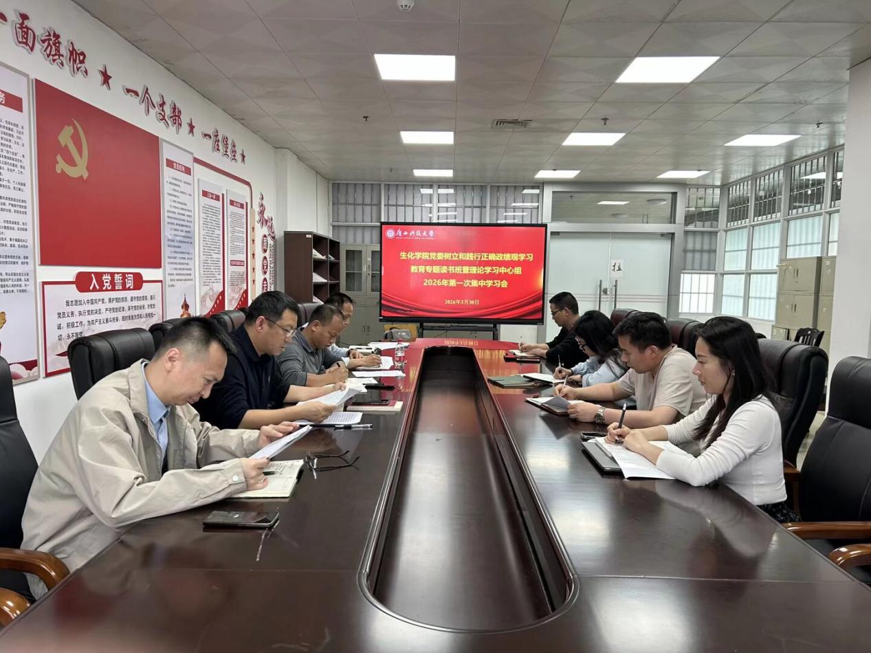 3月30日,生物与化学工程学院顺利开展树立树立和践行正确政绩观学习教育专题读书班暨理论学习中心组2026年第一次集中学习。学院党政领导班子成员、理论学习中心组成员参加会议。会议由学院党委书记陈志波主持。