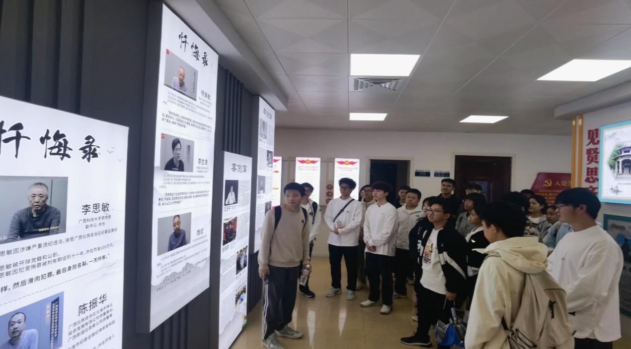 活动的第一站为广西科技大学文昌校区清廉教育展厅。在这里,同志们开启了“廉洁理论深学悟透”的专题学习。展厅内容详实,脉络清晰,系统展示了从古代清官廉吏的嘉言懿行,到中国共产党在革命、建设和改革进程中一以贯之的廉洁自律要求。通过观看历史文献、先进事迹介绍以及典型警示案例,同志们进行了一次深刻的廉洁文化洗礼。从海瑞、包拯的刚正不阿,到焦裕禄、孔繁森等新时代楷模的无私奉献,与少数党员干部因理想信念坍塌、贪欲膨胀而坠入犯罪深渊的案例形成了鲜明对比。
