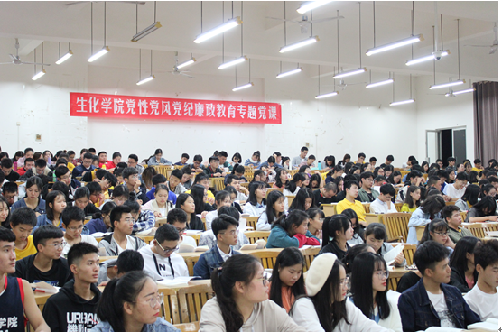 2019年10月31日晚上, 生化学院“不忘初心、牢记使命”主题教育党课 ——学生党员党纪党风及廉洁教育活动在4阶5举行,主题教育专题党课有学院党委副书记、纪委书记钟兴主讲。