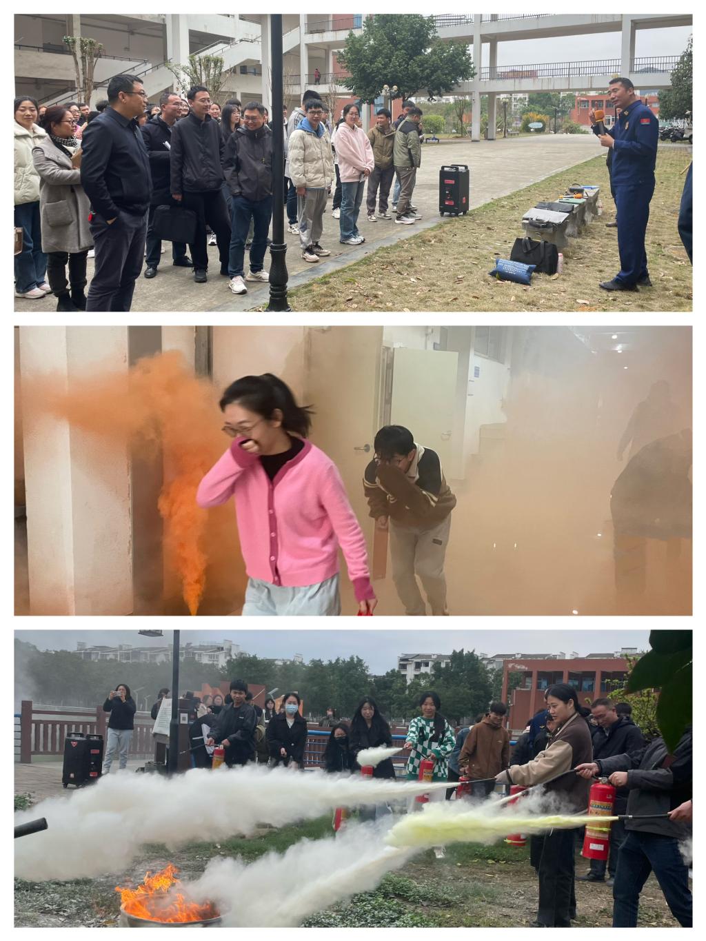 消防疏散演练以“预防为主、防消结合”为原则,学院制定了详尽细致的演练方案。演练前,学校保卫处消防科向全体师生强调了疏散演练的纪律要求,并负责疏散引导及现场秩序维护等。疏散演练提升了师生应急疏散逃生的自救能力;通过模拟初期火灾发生情景,师生学会了正确使用灭火器进行火灾扑救。