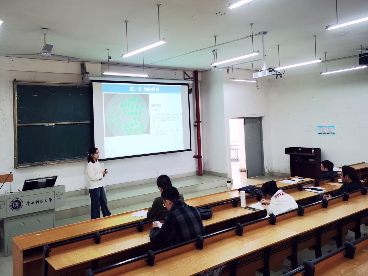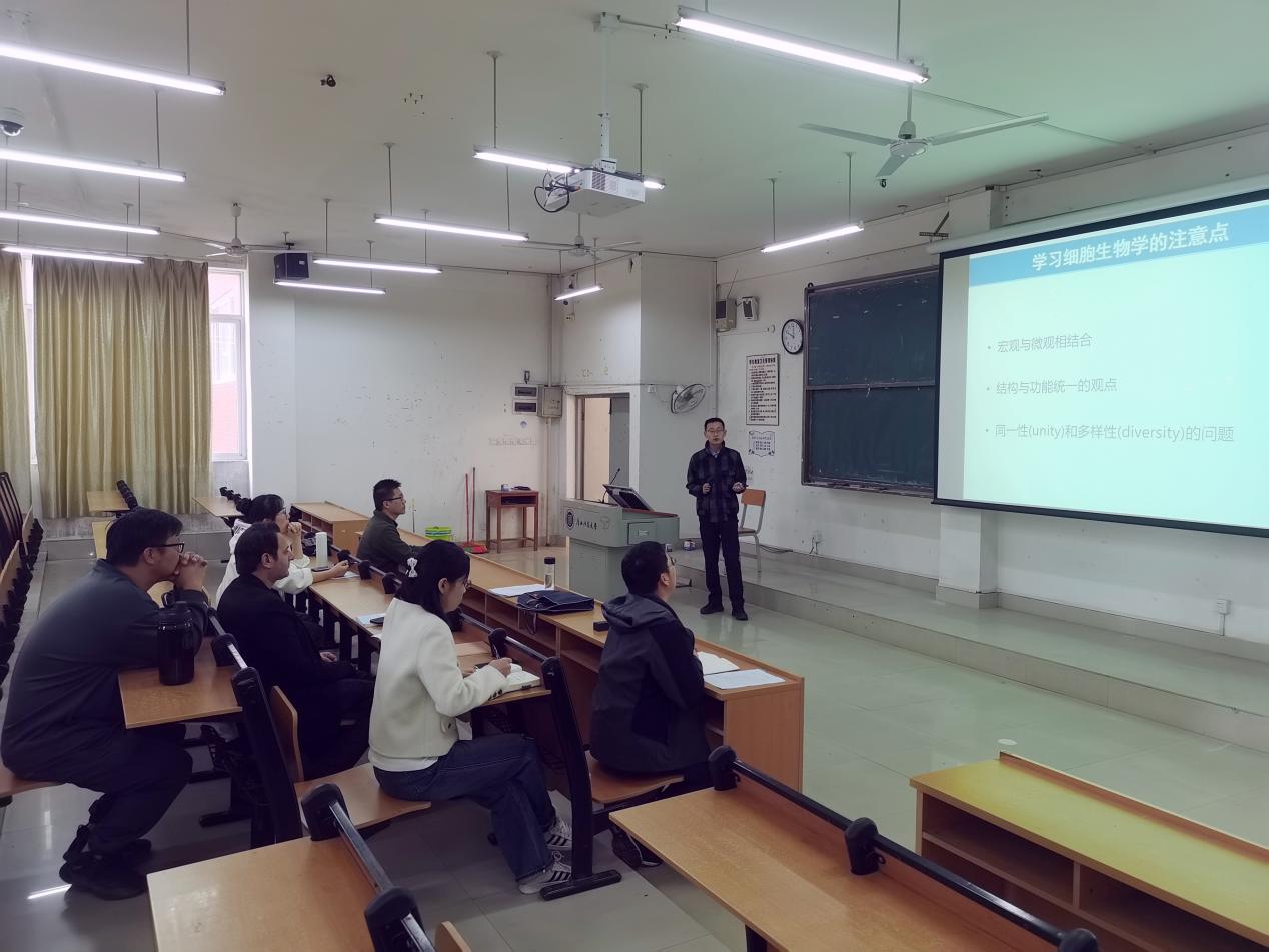 卢宇勋、郭枫两位老师分别讲授了《细胞生物学》课程的部分章节内容。随后,参加活动的各位老师肯定了两位新教师在备课、授课过程中付出的努力,鼓励他们在教学过程中不断吸收优秀经验,争取把《细胞生物学》课程建设成有特色的优质专业课程。