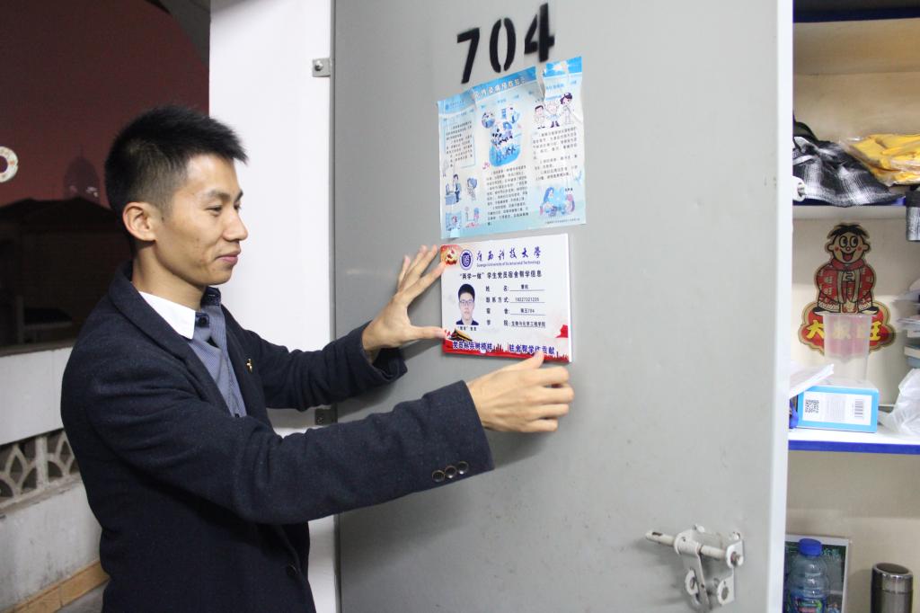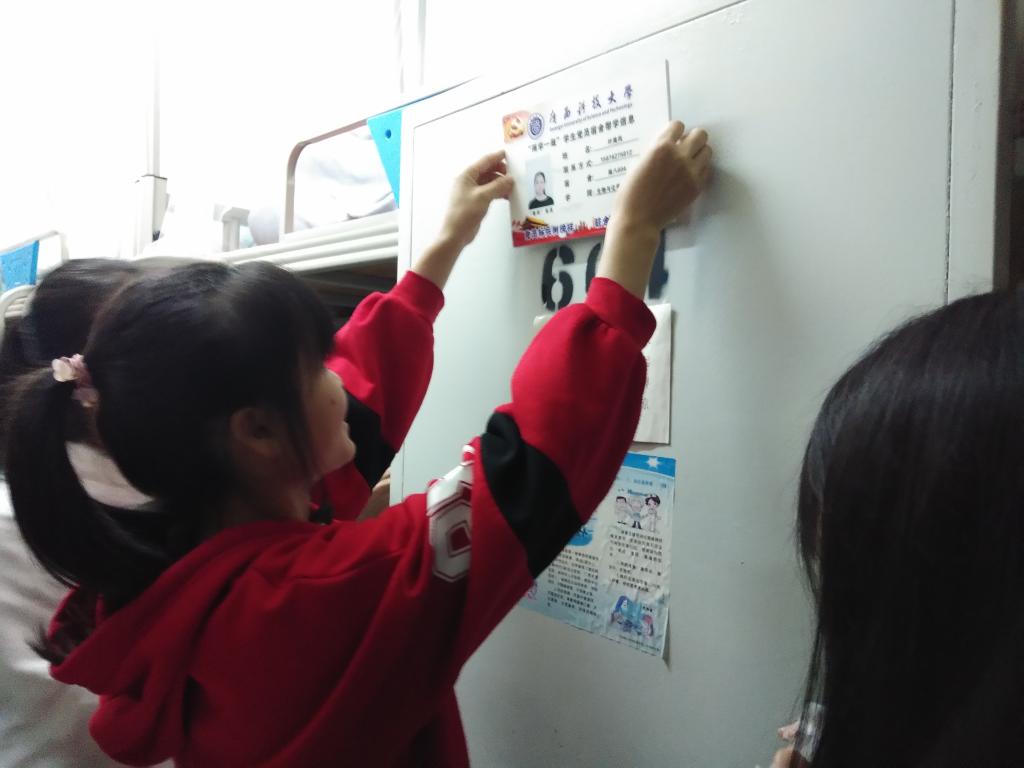本次活动由学生党建办公室统筹安排各支部的学生党员到所属支部的班级,向大一新生讲学习、讲生活,解决新生所面临的问题,充分发挥学生党员的带头有作用,为新生树立良好的榜样。晚九点半,“学生党员宿舍”挂牌仪式准时展开,我们跟随何向老师来到生化学院学生宿舍,在这里何向老师询问了新生的生活状况和学习情况,在看到部分新生已配备电脑时,他说到:今时已不同以往,我们要充分利用现有的学习资源更好的提高学习效率和学习质量,网络能为我们提供更广泛的专业知识,这是我们这代人的优势,我们应该抓住这个机遇努力提升自己。鼓励新生们要好好学习,提高自己的专业知识、实践能力、创新精神、人文素养,希望他们要有崇高的信仰、坚定的理想和宽广的胸怀。与此同时每个党员下到所分配的宿舍和大一新生进行谈话交流,学生党员对大一新生的学习进行了了解,并且向他们分享了自己的学习方法和经验,在他们的谈话中,用学习生活工作中的琐事向大一新生阐述新时代,大学生要以理想信念引领历史使命以及以创新精神诠释责任担当,让他们明白了何谓“新时代大学生的历史使命与责任担当”和这种责任和担当应该深入到日常的生活学习工作中,最后学生党员对大一新生提出了建议与要求,建议他们现在要好好学习,努力提高自己的知识水平。