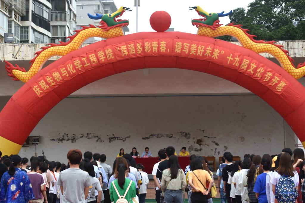 5月11日上午,生物与化学工程学院第十九届共青团主题文化节开幕式在田径场成功召开。本次活动以“挥洒多彩青春,谱写美好未来”为主题展开。生化学院党委副书记钟兴老师、2017级辅导员康会茹老师、2016级辅导员高小尧老师,院团委副书记王逸伦、院团委副书记符立庄,院团委学生会主席苏琦,以及大一到大三团支部全体成员出席开幕式。本次活动由生化学院团委办公室和团委组织部共同主办。开幕式由高小尧老师主持。