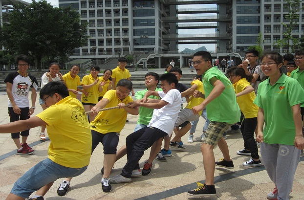 本次素质拓展以部门小组为单位,用抽签的形式决定小组游戏顺序。在总策划人简短的开幕致辞之后,素质拓展的一系列游戏陆续展开。游戏共设置了风雨同舟、合作无间、接力无ng、拔河四个非常具有创意的比赛项目。在比赛中,同学们密切配合,勇往直前,骄阳似火也抵挡不住同学们欲展拳脚的勃勃雄心。密切的配合增强了同学们的团队协作能力和身体素质,也加强了各部门同学之间的交流。