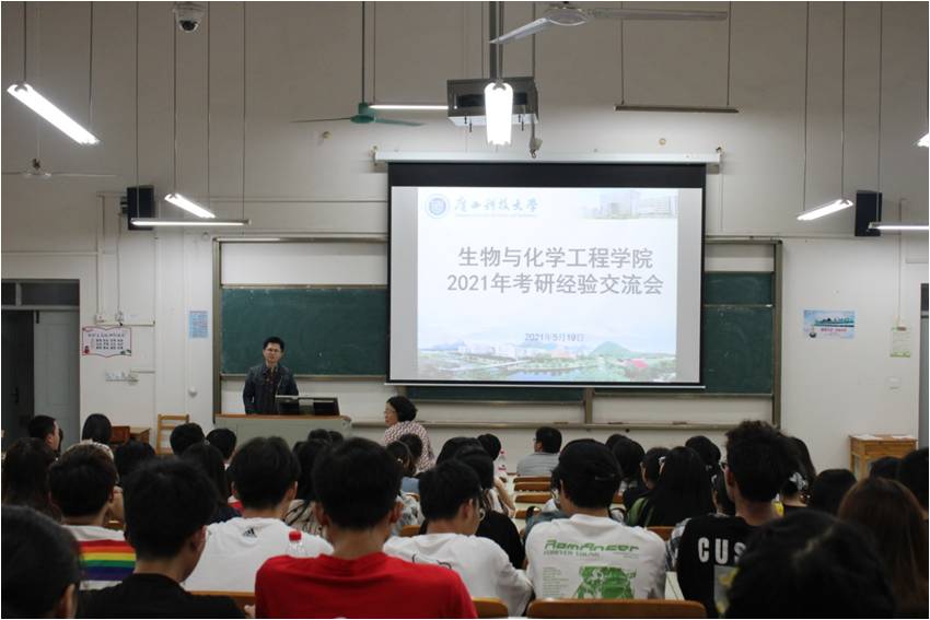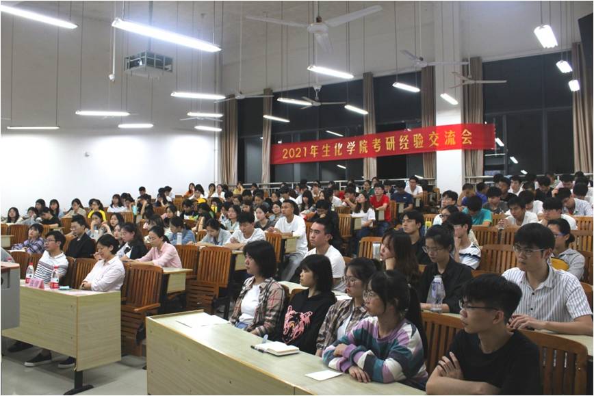 为进一步加强学院学风建设,使学生提高考研积极性何树立明确的考研目标,5月19日晚7:30,生化学院在6北102召开学院2021年考研经验交流会。学校研究生工作部副部长、研究生工作处副处长刘胜永老师,生化学院院长田玉红老师、副院长叶云老师、化学教研室主任张倩老师、生物工程教研室易弋老师,学院2021年考研成功的同学以及2018级备考研究生考试的同学、2019级和2020级有意向考研的同学,共同参加了本次交流会。本次交流会由学院副院长叶云老师主持。
