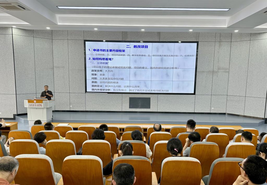 报告会上,李有志教授结合自己丰富的实践经验,从项目申报、实施、到成果转化的全过程进行了细致入微的讲解。李教授指出,教改项目的成功关键在于紧密结合教学实际,勇于创新,不断探索适合学生发展的教学方法和手段。随后,李有志教授还分享了自己在教学成果方面的经验与心得。他通过一系列生动的案例,展示了如何通过教改项目推动教学成果的转化和应用。这些成果不仅提升了学生的学习效果,也为教师的专业成长提供了有力的支撑。