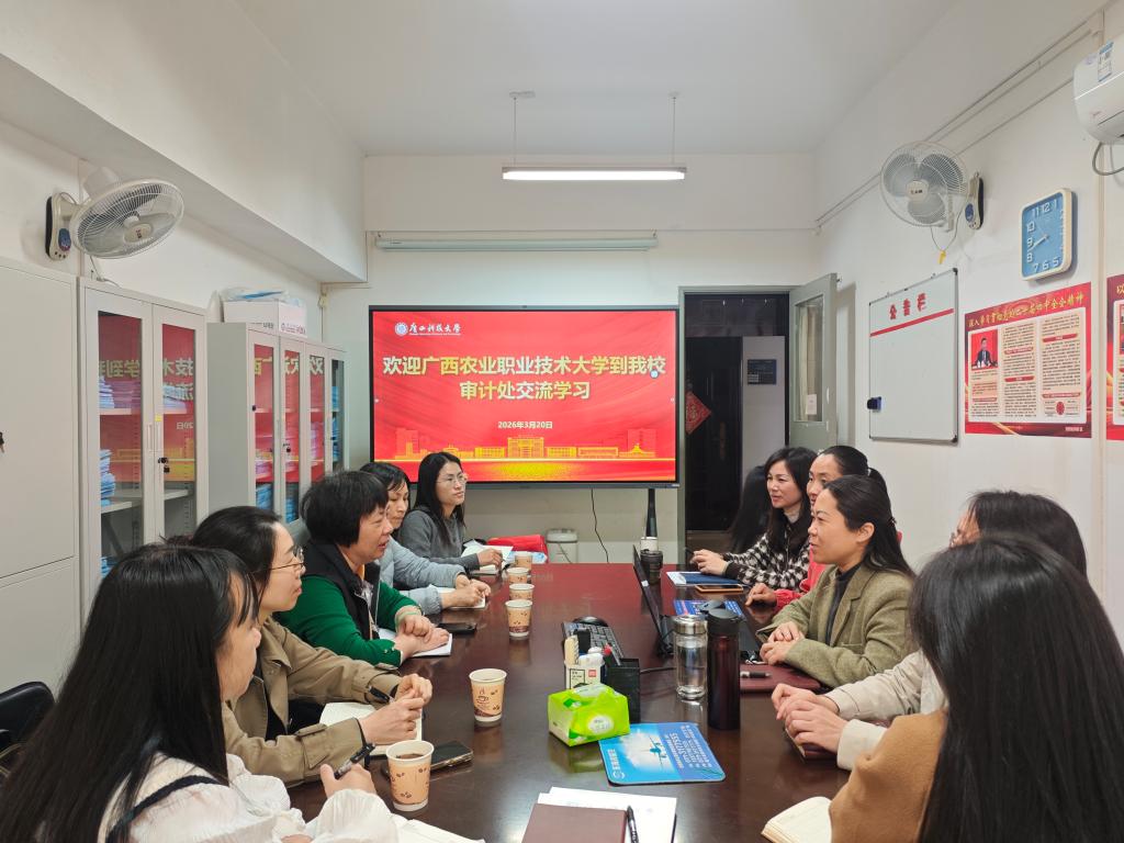 3月20日上午,广西农业职业技术大学审计处处长罗艳洪一行5人到我校调研交流。双方在文昌校区办公楼608会议室举行座谈交流会。审计处全体人员参会。双方围绕高校经济责任审计、财经专项审计、工程审计、审计数字化等方面展开深入交流。