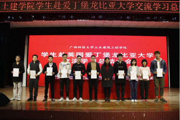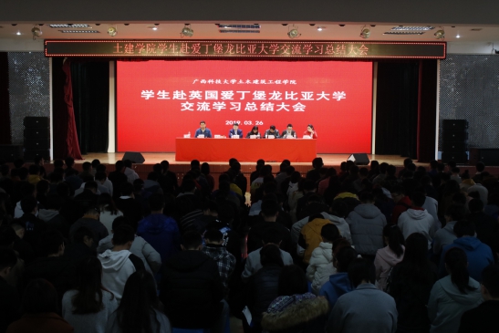 3月26日下午,土木建筑工程学院在大学生活动中心召开了2018年学生赴英国爱丁堡龙比亚大学交流学习总结大会。土建学院党委书记杨南,院长吴辉琴,副院长邓宇,教研室主任刘敬敏、黄柳云、廖羚、赵军,学生代表400余人参加会议。