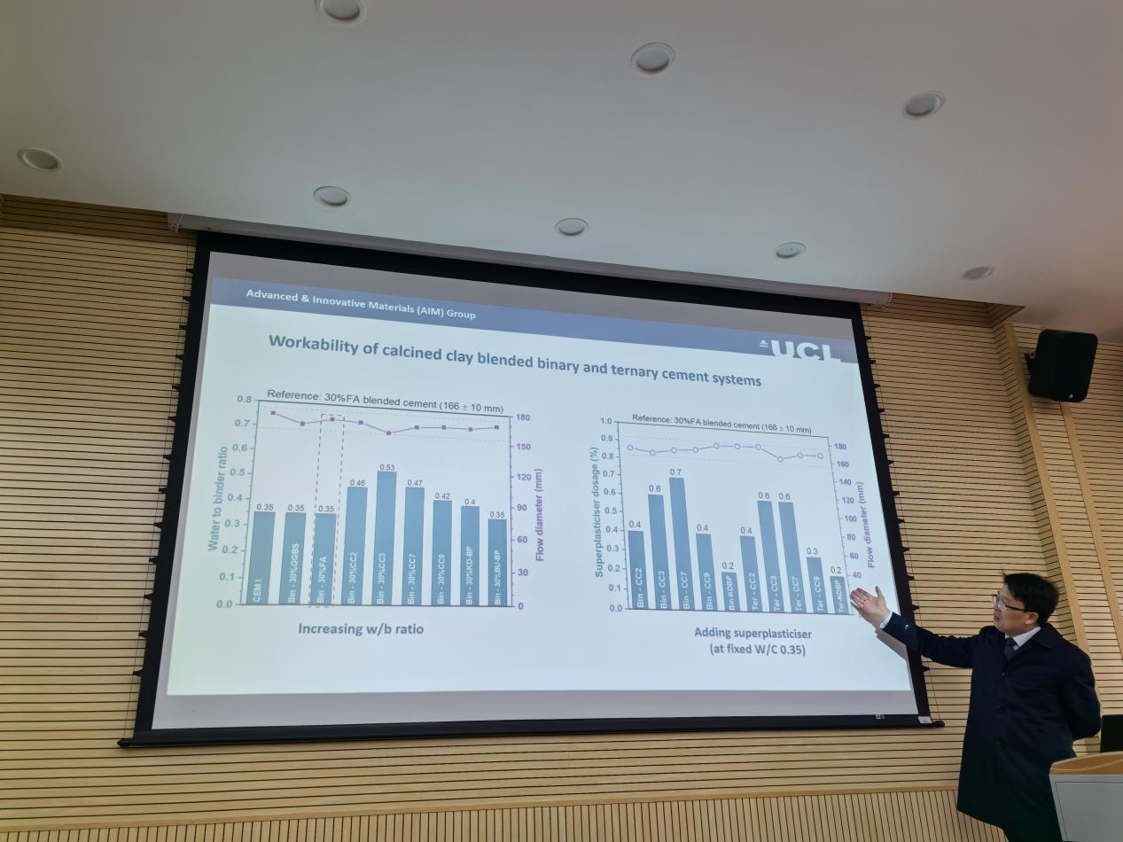 在本次学术讲座中,白云教授提出,目前高品质粉煤灰、矿渣已经成为优质建材,正短缺面临的问题,白云教授所在的研究中心正在探索将从废物衍生出来的低品位粘土转化成为辅助性胶凝材料的潜力,开发出一种新型低碳水泥。低品位的粘土因其来源不同,其矿物组成和内部包含的杂质存在一定的差异,白云教授认为在选用合适的煅烧方法和添加适当的减水剂时,被改性的杂质也可能表现出有助于抗压强度的发展。掺加煅烧低品位粘土的水泥,可以展示出与传统矿渣水泥相当的性能。