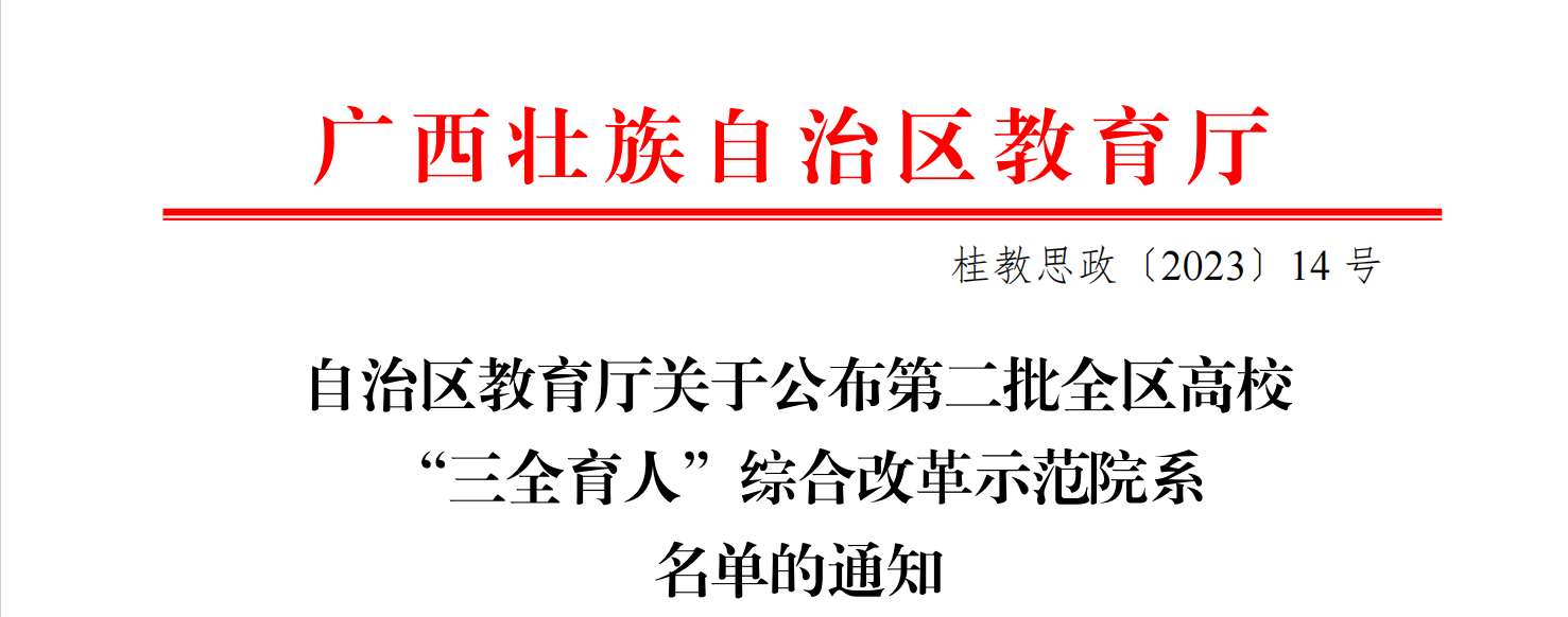 近日,自治区教育厅印发了《关于公布第二批全区高校“三全育人”综合改革示范院系名单的通知》,我院成功入选,并获批A类等级。