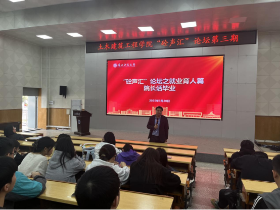 4月7日下午,学院在4阶1开展毕业生就业教育第三期活动,党委书记梁贞巧、团委书记葛健、辅导员肖琳、全体毕业生参加本次活动。梁贞巧从跳出舒适圈、“土木+”融合发展、树立正确就业观三个关键维度,引导学生更好地适应市场需求。