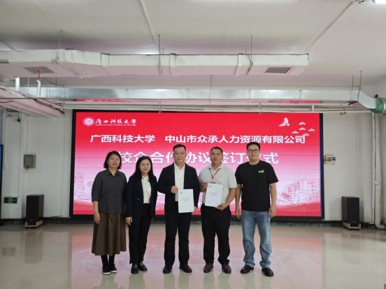 3月26日上午,学校大学生就业指导中心与中山市众承人力资源有限公司校企合作签约仪式在学校就业指导中心举行。学校学工部(处)副部(处)长、大学生就业指导中心副主任秦文东,中山市人力资源和社会保障局人才交流科科长梁厚华、中山市众承人力资源有限公司总经理王进、土建学院班子成员参加仪式。