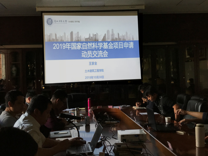10月30日下午,土建学院在建工楼三楼会议室召开了2019年国家自然科学基金项目申请动员交流会。会议由王家全教授主持,土建学院全体教职员工参加。