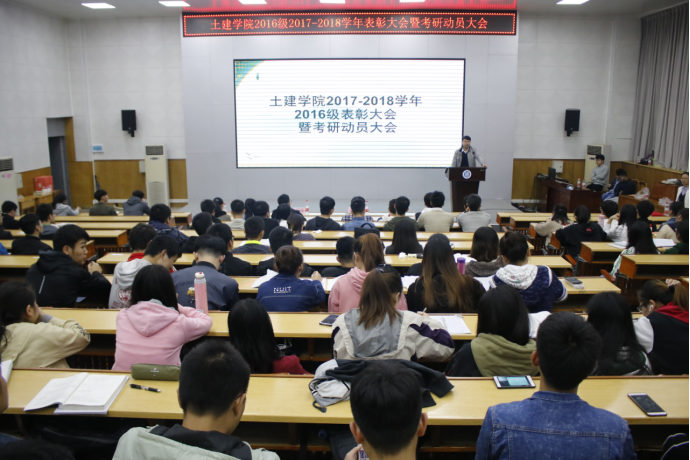 为表彰先进,总结方法,展望未来,10月24日晚,土木建筑工程学院于图书馆报告厅召开了2016级表彰大会暨考研动员会。土木建筑工程学院党委副书记、副院长邓宇以及2016级全体同学参加会议。会议由2016级辅导员庞乾静主持。