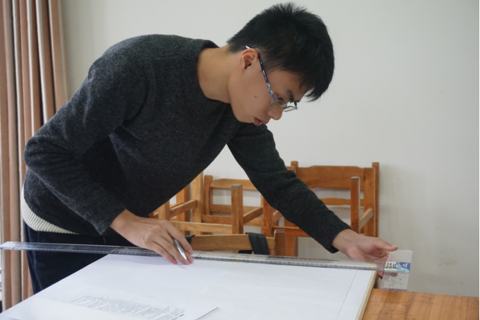 在竞赛现场,参赛同学仔细查看考试题目,不时翻阅设计手册,全神贯注,凝眸思索该怎样运用课堂学习的知识,设计一个最优方案。秋雨在窗外弥弥漫漫,画笔在纸上沙沙成响,创意从笔端缓缓流淌。