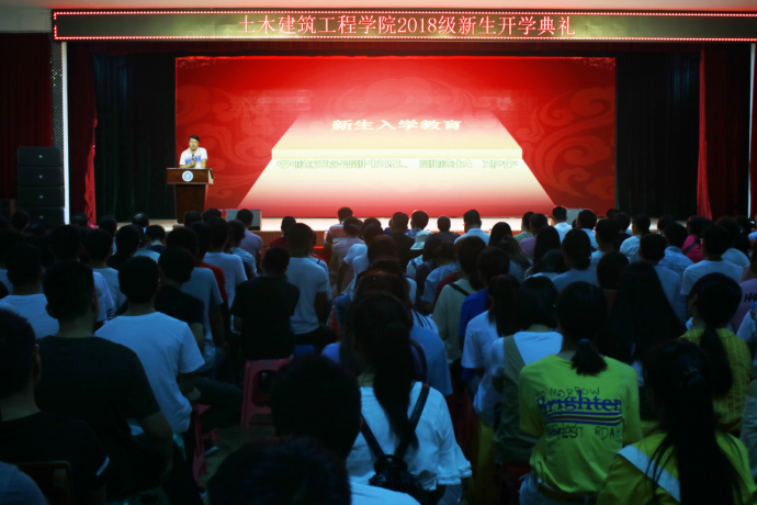 晚上7:30,土建学院2018级新生开学典礼顺利召开。土建学院党委书记叶雁冰,党委副书记、副院长邓宇,全体班主任,2018级全体新生及部分新生家长参加开学典礼。本次开学典礼由2018级辅导员张哲源主持。