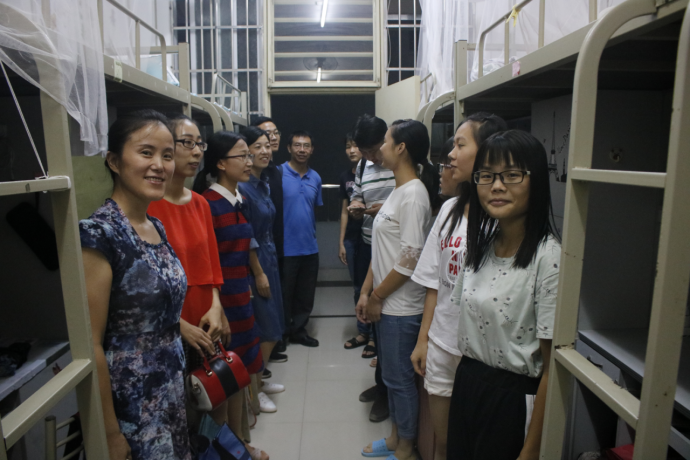 为及时了解学生返校情况,准确掌握学生基本情况和思想动态,为新学期各项工作做好准备,9月2日晚上7:30,土木建筑工程学院党委书记叶雁冰、副书记副院长邓宇带领辅导员和班主任深入走访土建学院学生宿舍。