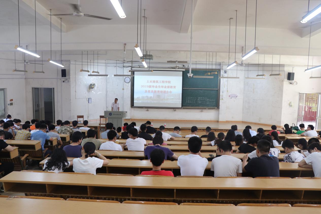 为做好2019届毕业生毕业离校工作,确保同学们顺利毕业、文明离校,6月3日上午,土建学院2019届全体毕业生在四阶一教室举行毕业生离校教育和毕业生党员教育大会。土建学院组织员陈雁、毕业生年级主任刘显晖参加会议。