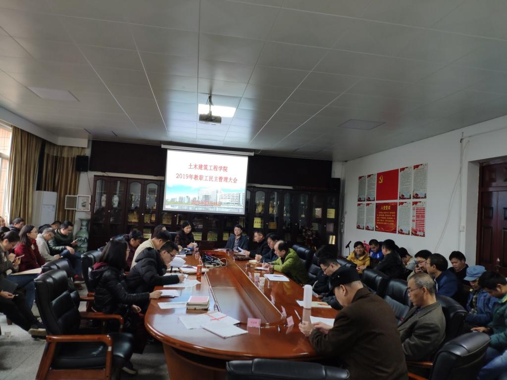3月19日下午,土建学院在建工楼三楼会议室召开了2019年教职工民主管理大会。会议由分工会主席刘显晖主持,全体教职工参加了本次会议。
