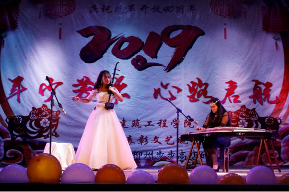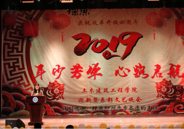 12月16日晚,土木建筑工程学院于大礼堂举办“年少芳华,心路起航” 2018年表彰总结暨2019年迎新文艺晚会,土建学院党委书记杨南、副院长吴辉琴、党委副书记副院长邓宇、院办主任林洁、团委书记辛姣珍、教研室主任刘敬敏、马黎进、廖羚、赵军,年级主任刘显晖、庞乾静、苏柳月、张哲源以及全体在校学生参加了晚会。
