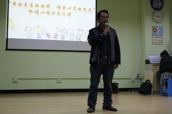 最后,梁杰华老师总结。他对每一组上台吟诵的同学进行了赞扬,感谢大家给同学们带来了一个美好的晚上。接着,他从心理学的角度对同学们提出的问题进行分析与解答。梁老师阐述了关于怎样认识自我,如何进行情绪控制与管理的方法。最后,梁老师为吟诵者和参加互动的同学颁发了由心理中心为大家准备的活动纪念品。