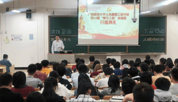 为强化对青年学生的思想引领,提高学生干部的理论素养、工作能力和实践水平,土木建筑工程学院于2019年11月15日19时30分在6北103教室举行了“青马工程”第13期培训班开班典礼。参加活动的有土木建筑工程学院党委书记杨南、团委书记谢欣妤、辅导员张哲源,以及学院全体团学组织干部。