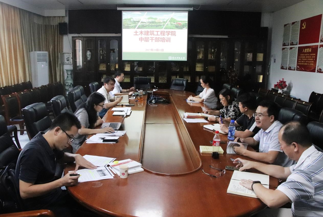 10月12日上午,土建学院在会议室召开中层干部培训会。党委书记杨南作了“不忘初心,砥砺前行,做一个优秀的学院中层干部”专题培训,学院班子成员、全体中层干部参加会议。