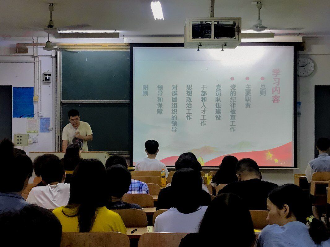 明亮又宽敞的教室里,建筑学学生党支部组织委刘海洋同志用PPT展示的方式带领大家一起学习,党支部的同志们在讲台下听着。他用幽默诙谐的说话风格详细地向大家介绍了条例中我们大学生需要注意的部分,同志们听得很认真并且做了相应的笔记。这一次讲解充分地向大家展示了中国共产党的扎实工作作风和严谨的工作态度,同时,对我们党支部以后的发展和工作开展也有很大的启发和意义。