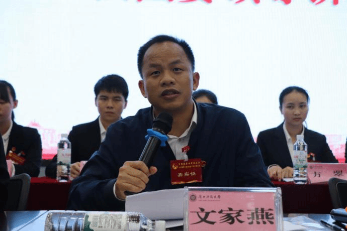 文家燕代表校团委讲话。他对学院青年工作取得的成绩给予充分肯定,对学院共青团工作提出了几点希望:一是要以思想引领和价值引领为核心,以崇高的理论引领青年,多渠道多形式地开展思想引领工作,努力培养一批对党忠诚,素质优良,作风过硬的大学生骨干。二是要以基层团组织建设为抓手,加大对团支部日常工作的指导和监督,全面提升基层团支部活力,充分发挥基层团组织的战斗堡垒作用。三是要以创新实践育人为载体,引导青年大学生积极投身创新创业实践,在社会实践中成长成才,在创新实践中练就过硬本领。