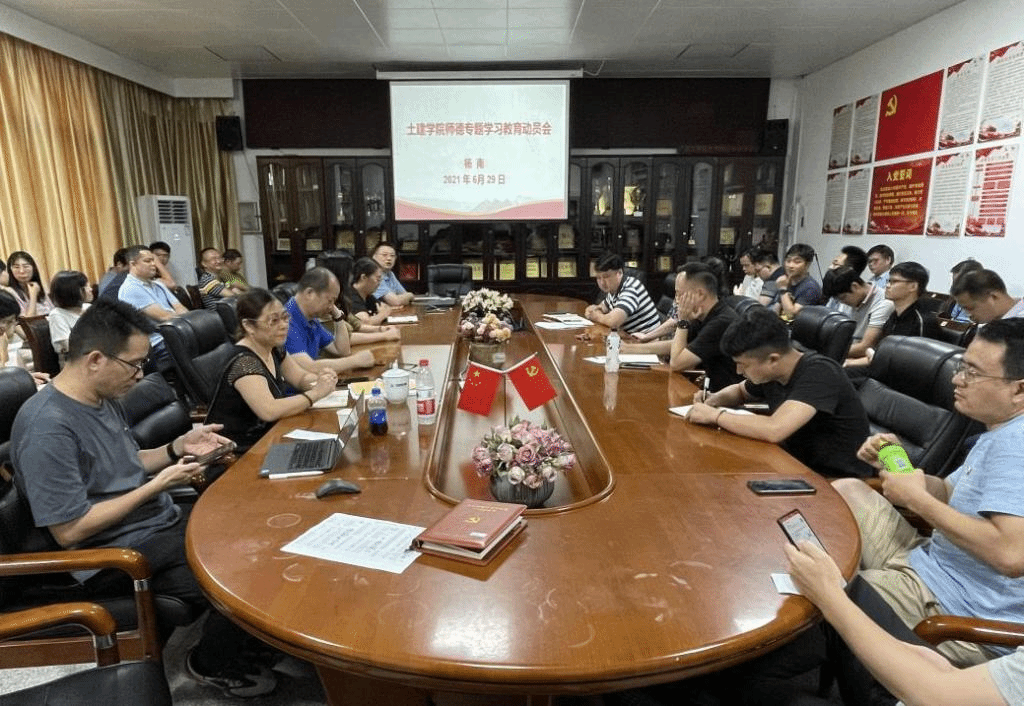 6月29日下午,土建学院在建工楼三楼会议室召开师德专题学习教育动员会,深入学习贯彻习近平总书记关于教育的重要论述和教师队伍建设的重要指示精神,并对学院2021年师德专题学习教育进行动员部署。全体教职员工参加学习,会议由党委书记杨南主持。