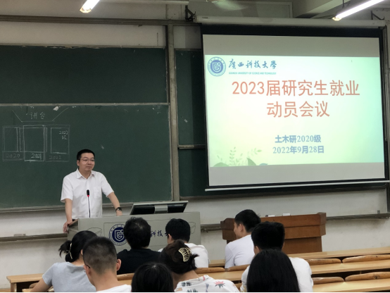 9月28日晚上,土建学院2023届研究生就业动员会在4C202教室举行。学院党委书记祝新,研究生辅导员谭春雷、王乃嵩,研究生班主任唐滢,2023届毕业生共40余人参加了此次动员会。