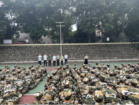 邓宇院长用三个问题引导学生思考军训对个人成长成才的重要性,勉励学生高质量、高标准地完成军训,服从教官指挥;并将军训中收获的坚定意志、过硬的作风和良好的习惯发挥到专业学习上。