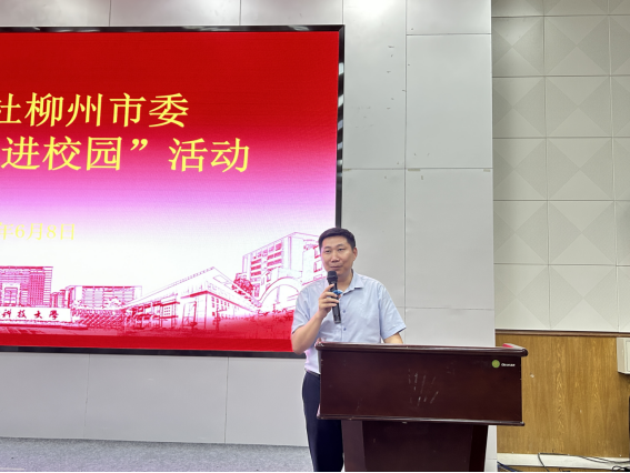 2023年6月8日,土建学院邀请九三学社柳州市委在图书馆报告厅开展“健康科普进校园”公益讲座活动,土建学院党委书记祝新,九三学社柳州市委副主委、市中医医院副院长吴刚,九三学社柳州市委办公室主任马立克,学校统战部统战科科长陈云芳及土建学院80余名学生干部参加活动,活动由土建学院党委副书记、纪委书记谭璐主持。