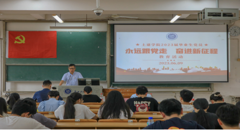 为加强对毕业生党员的教育管理,6月9日下午,土建学院在我校文昌校区第四教学楼4C301教室开展2023届毕业生党员“永远跟党走,奋进新征程”教育活动。学院党委书记祝新,党委副书记、纪委书记谭璐,专职组织员梁小延,辅导员李江以及100余名毕业生党员参加活动。