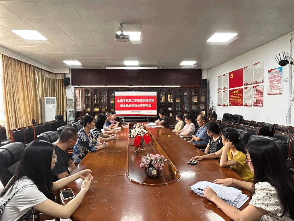 6月2日下午,土建学院在建工楼302会议室召开2023年第二季度意识形态和安全稳定形势分析研判会。学院领导、各系主任、实验室老师、辅导员参加会议。会议由学院党委书记祝新主持。
