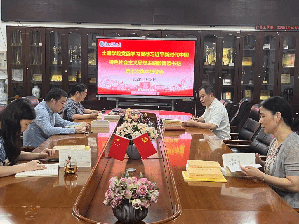 5月24日,土建学院党委学习贯彻习近平新时代中国特色社会主义思想主题教育读书班,在建工楼302会议室召开第七次集中学习会。学院党委书记祝新,院长吴辉琴,党委副书记、纪委书记谭璐,副院长王家全、黄柳云参会。会上,全体人员集体学习了《习近平新时代中国特色社会主义思想专题摘编》《习近平著作选读》节选材料。