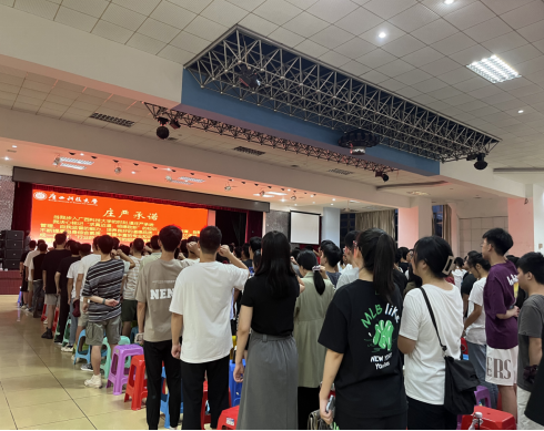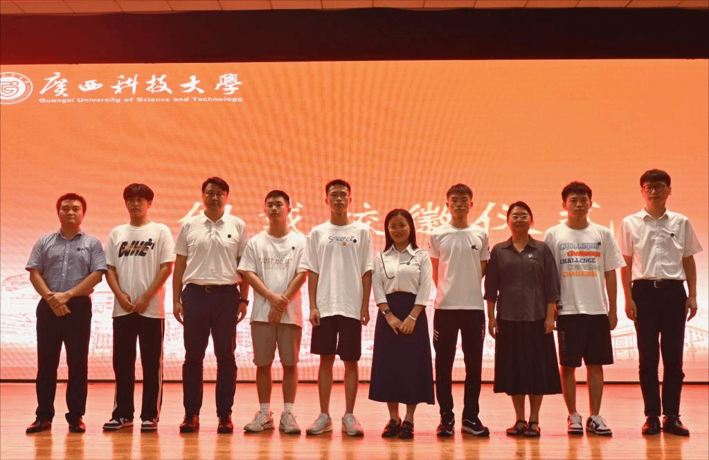 党委副书记谭璐向全体新生介绍学校的校徽、校训、学校精神以及土建精神。她希望同学们能深刻领会校徽校训的深刻含义,发扬“敢为人先、百折不挠,务实创新、追求卓越”的广西科技大学精神,继承“钢筋土建,永争第一”的土建学院精神。此后,学院领导、老师为全体新生发放并佩戴校徽。
