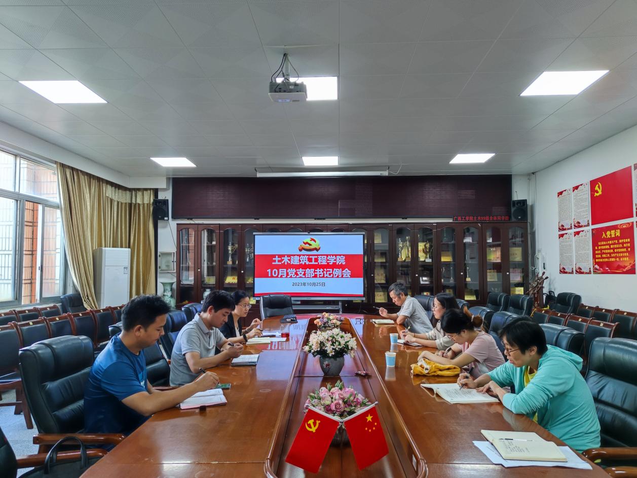 10月25日,土建学院在建工楼3楼会议室召开10月党支部书记例会,学院党委书记梁贞巧,专职组织员梁小延及全体党支部书记参加会议。会议由梁贞巧主持。