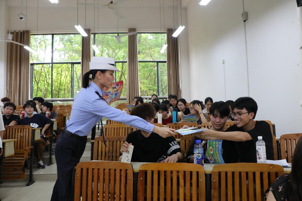 宣讲活动设置了有奖互动问答环节。民警向学生发放交通安全宣传材料,与学生进行互动问答,通过活动引导学生树立正确的交通安全观念,养成良好的文明出行习惯,激发同学们交通安全意识。