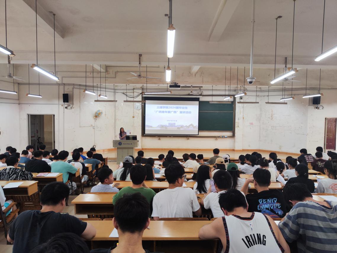 为进一步落实立德树人根本任务,坚持“为党育人、为国育才”初心使命,更好帮助2024届毕业生树立就业信心,激发毕业生就业创业的动力,土建学院于5月29日下午,在文昌校区6北101教室开展土建学院2024届毕业生就业工作推进会暨“广西青年爱广西”留桂宣讲活动。学院党委副书记、纪委书记谭璐出席活动,2024届全体毕业生参加活动。会议由学院辅导员肖琳主持。