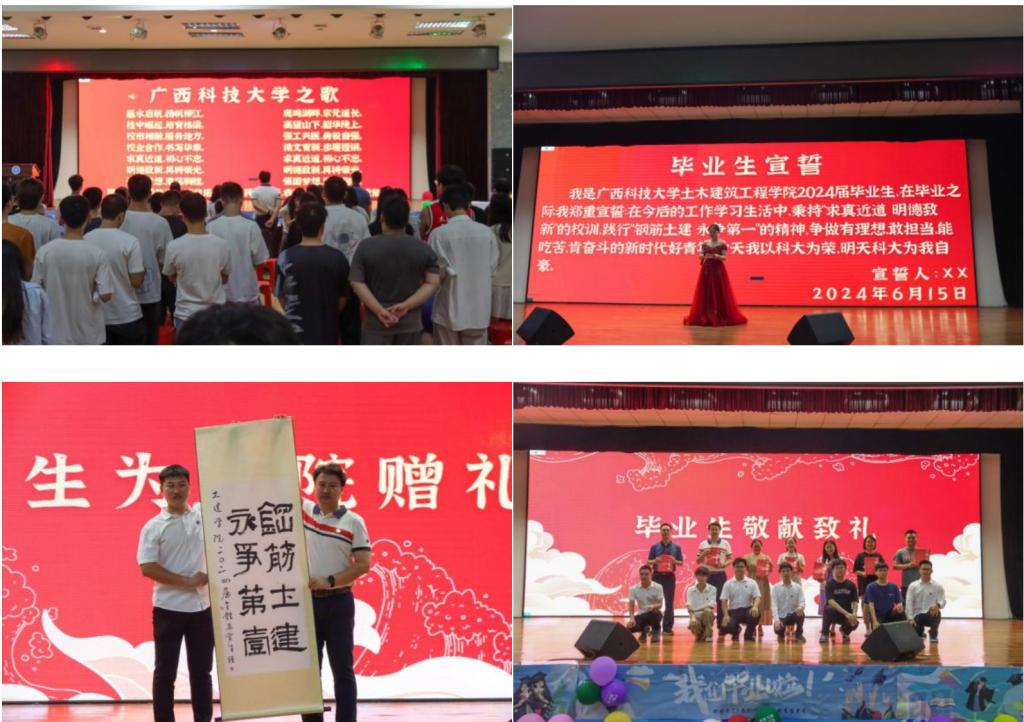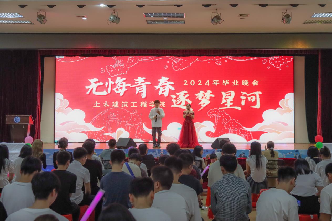6月15日晚,土木建筑工程学院在大学生活动中心举办“无悔青春·逐梦星河”2024年毕业晚会,学院领导班子和各系主任、辅导员、班主任、在校毕业生到场参加晚会。