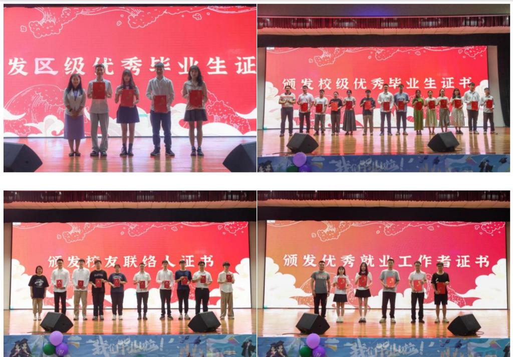学院领导班子为荣获广西壮族自治区优秀毕业生、学校优秀毕业生、优秀就业工作者的毕业生及各班校友联络人颁发荣誉证书。